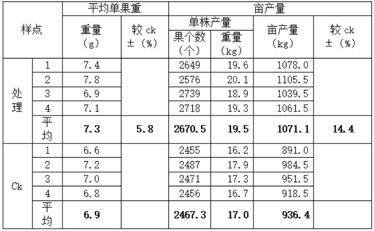 樱桃采摘前1天,每处理调查4株树,每株树按东、南、西、北、中五个方位,每方位随机摘取果实20个,调查单果重;并对4株树的产量进行实测,记录产量,计算亩产量。